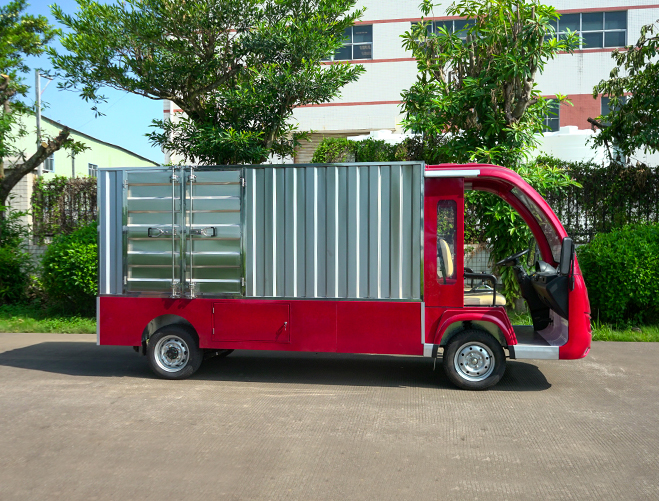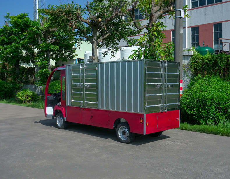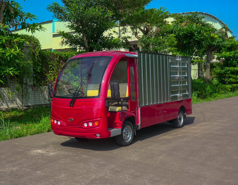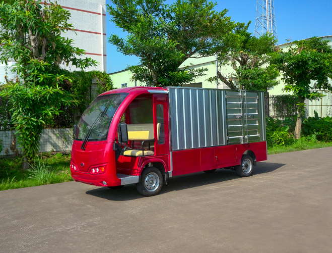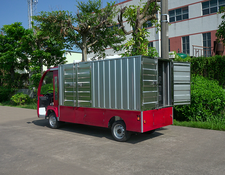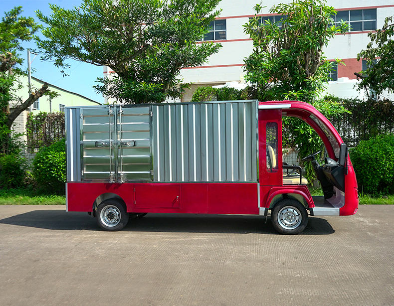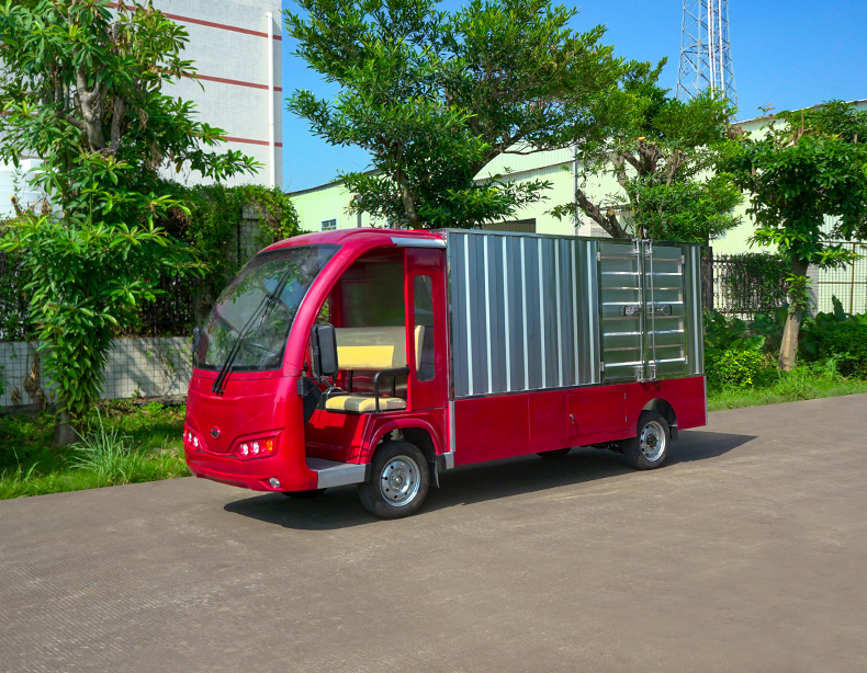 T14B-S深紅色廂式封閉貨車四輪電瓶觀光車廠內(nèi)轉(zhuǎn)運車定制平板拉貨車